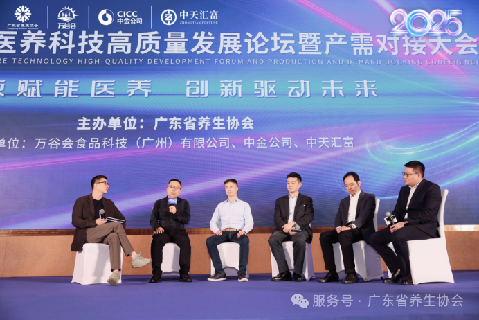 华津医药副总裁黄炜、嘉检医学创始人张巍博士、虹摹生物CEO康林辉、阿康健康创始人王李珏、启辰生生物CEO刘东共同探讨如何将中医药创新药与国际标准接轨,推动“中式康养方案”走向全球。